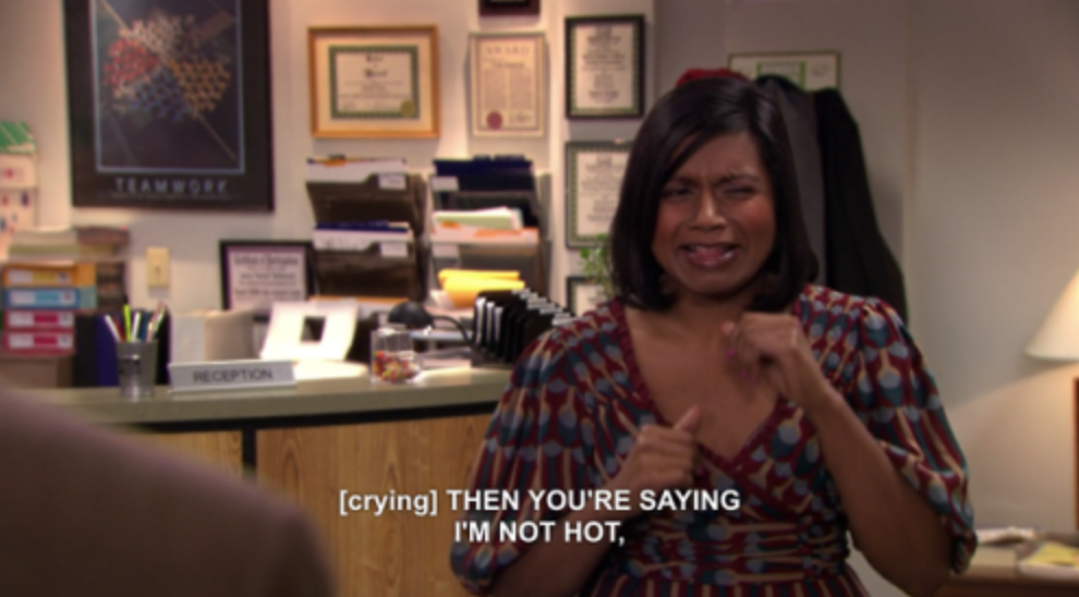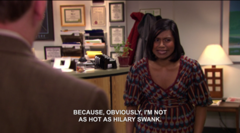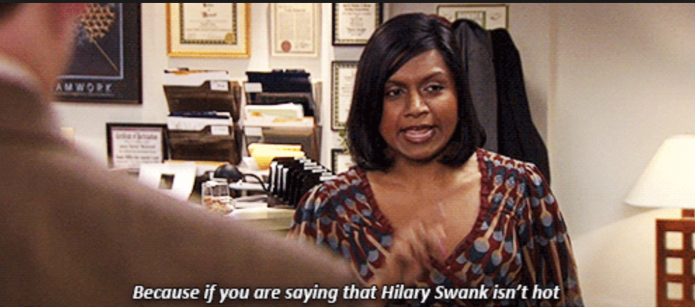 The reason I cannot stand for this is the same reason that Kelly Kapoor felt the need to stand up for “Hillary Swank’s hotness” in the Office.