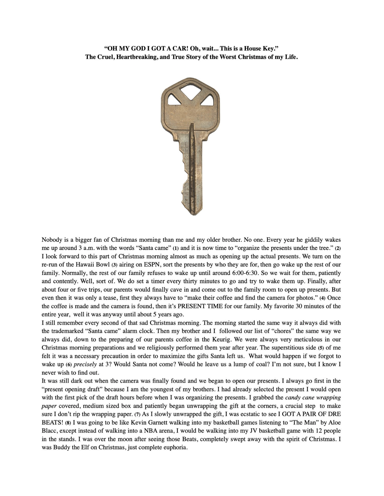 “OH MY GOD I GOT A CAR! Oh, wait… This is a House Key.” The Cruel, Heartbreaking, and True Story of the Worst Christmas of my Life. *Published 12/24/2018* Share this: Click to share on X (Opens in new window) X Click to share on Facebook (Opens in new window) Facebook Like Loading... Related Leave a comment Cancel reply Δ