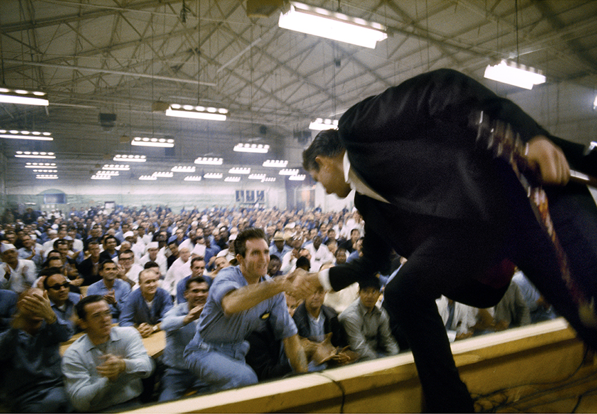 I can already hear my die-hard country fan friends challenging me on that. “What makes it so good?” they might say, and that’s a totally fair question. It sure isn’t the mindless fun kind of studio formulated country which works so well on a summer afternoon. It isn’t as easy to listen to or pleasing to the ears as the works of Kenny Chesney or Taylor Swift, but it’s a hell of a lot deeper. The beauty of this live album is that the music is elevated by the fact that it’s performed live. The songs are carefully curated to be performed for men who are confined by the grey bricks of Folsom prison, some of them are even about those men and one song that Cash performs was written by a man in the prison. He interacts with the audience and they interact with him. He makes them laugh and vice versa, there are cheers and celebration at certain lines such as the grim “I shot a man in Reno just to watch him die”, and total enraptured silence in emotional tracks like “Send a Picture of Mother”. The music on this record is not for us, it was for the men in Folsom and nobody else, we just get the privilege of getting a way to experience that show years later. You can’t quite put yourself in the shoes of an inmate when listening to the album, and you certainly can’t put yourself in Cash’s shoe either. The only way to watch this album is as a neutral third party, without judgement, just observing what’s happening before you.